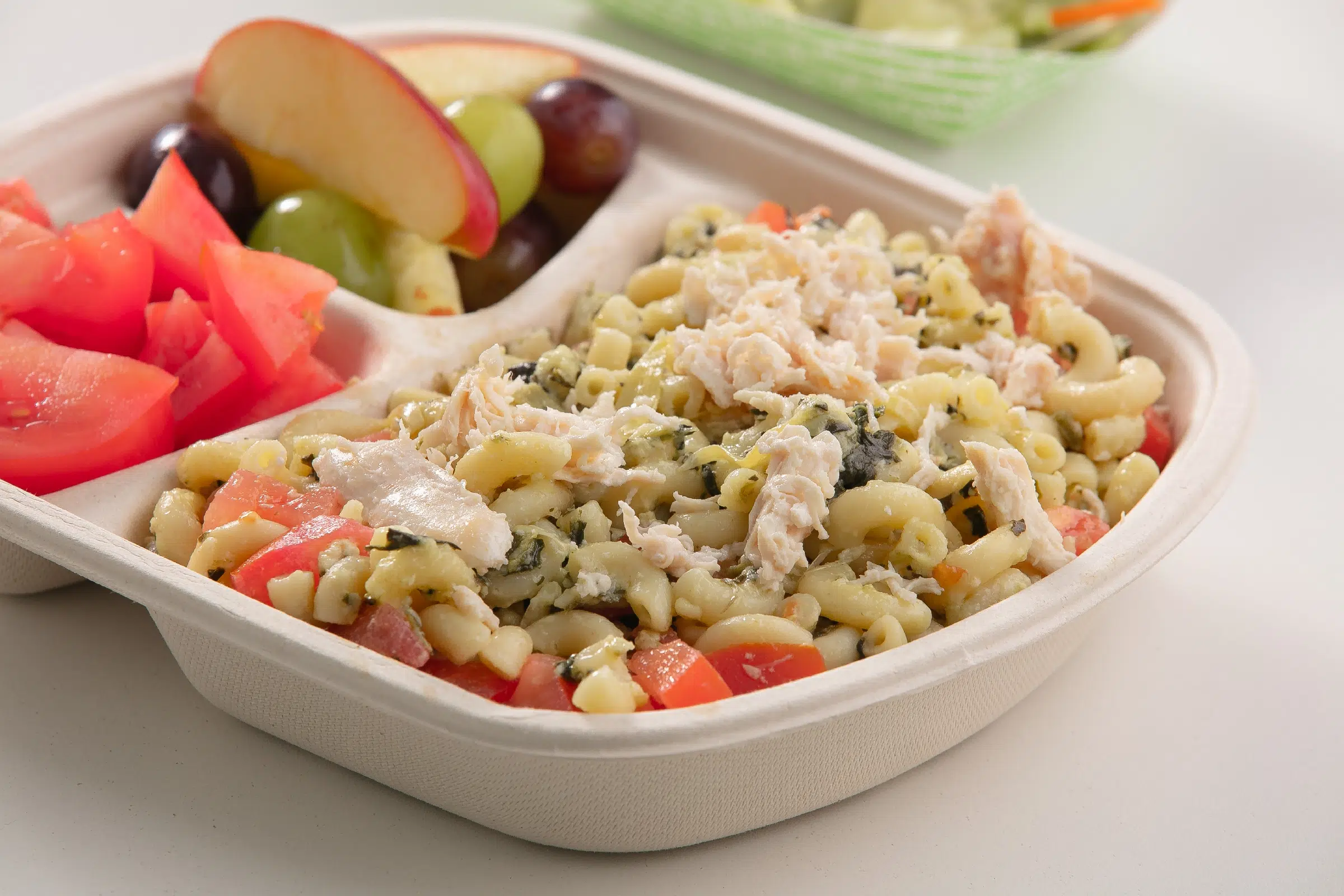 Our Spinach & Artichoke Chicken Bianco Pasta brings a popular, creamy flavor to your K-12 menu! We mix tender elbow macaroni with a rich, savory spinach and artichoke dip, then add diced tomatoes for a burst freshness and color. This craveable comfort food is easy to make and a dish your students are sure to love.