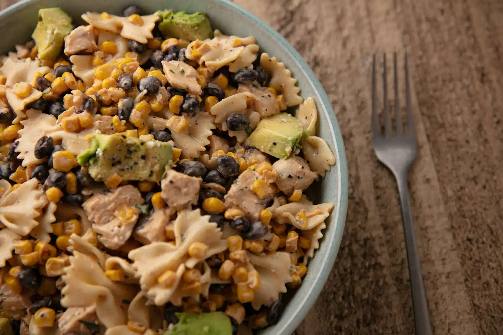 Our Black Lime Chicken Street Corn Pasta Salad is a bold and vibrant dish featuring Tavolini Bowtie Fully Cooked Pasta tossed with shredded rotisserie chicken, sweet corn, black beans, and a tantalizing blend of spices, zesty lime, and creamy avocado. This unforgettable summer salad is a must try!