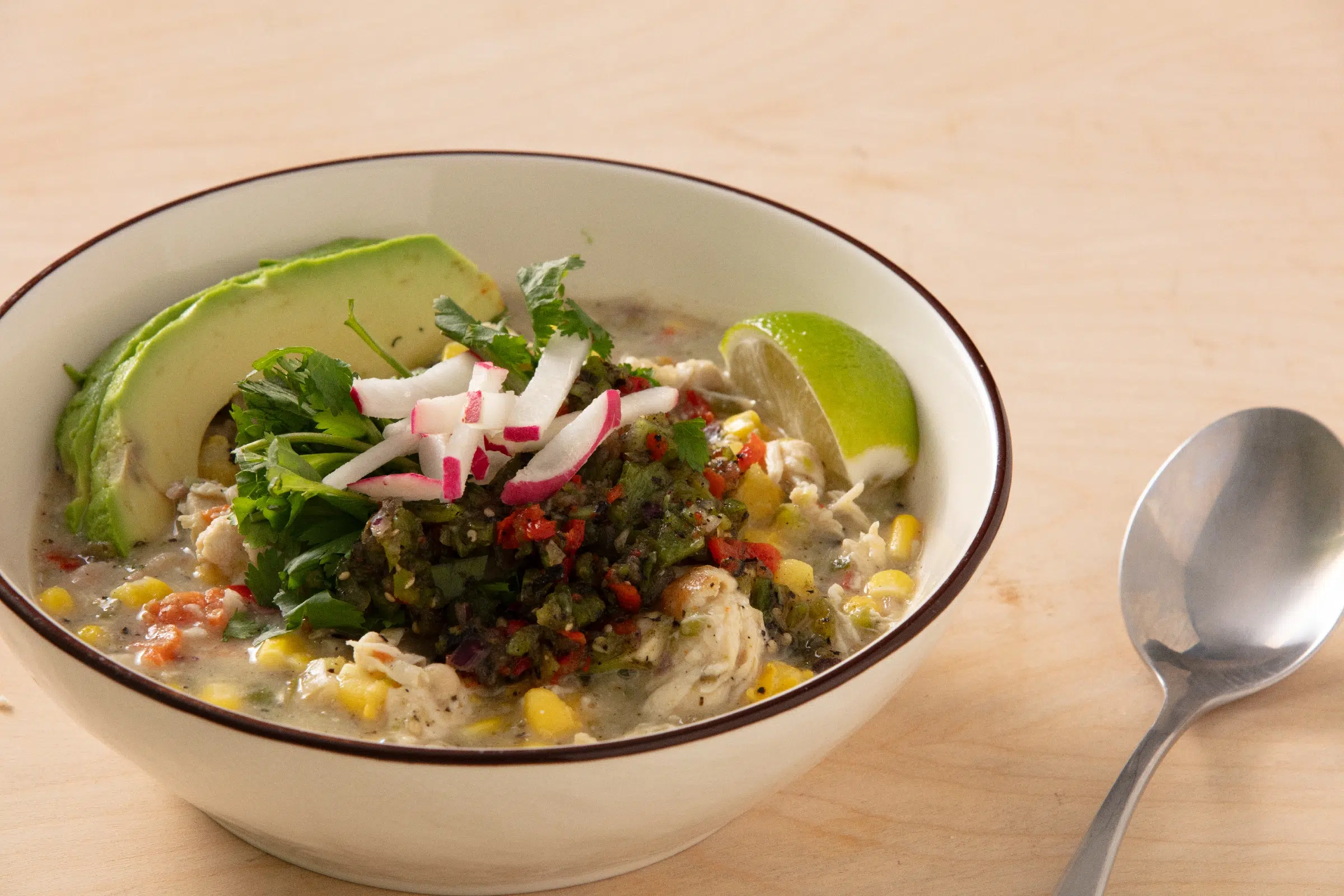 Our simplified Pozole Verde gets its vibrant green hue and depth of flavor from a blend of our savory Mexican-Style Chicken Verde Soup, zesty roasted tomatillos, and smoky, mildly spicy charred poblano peppers. We’ve added tender, Fully Cooked Pulled Rotisserie Chicken and large, fluffy hominy to create a deeply satisfying, hearty texture.