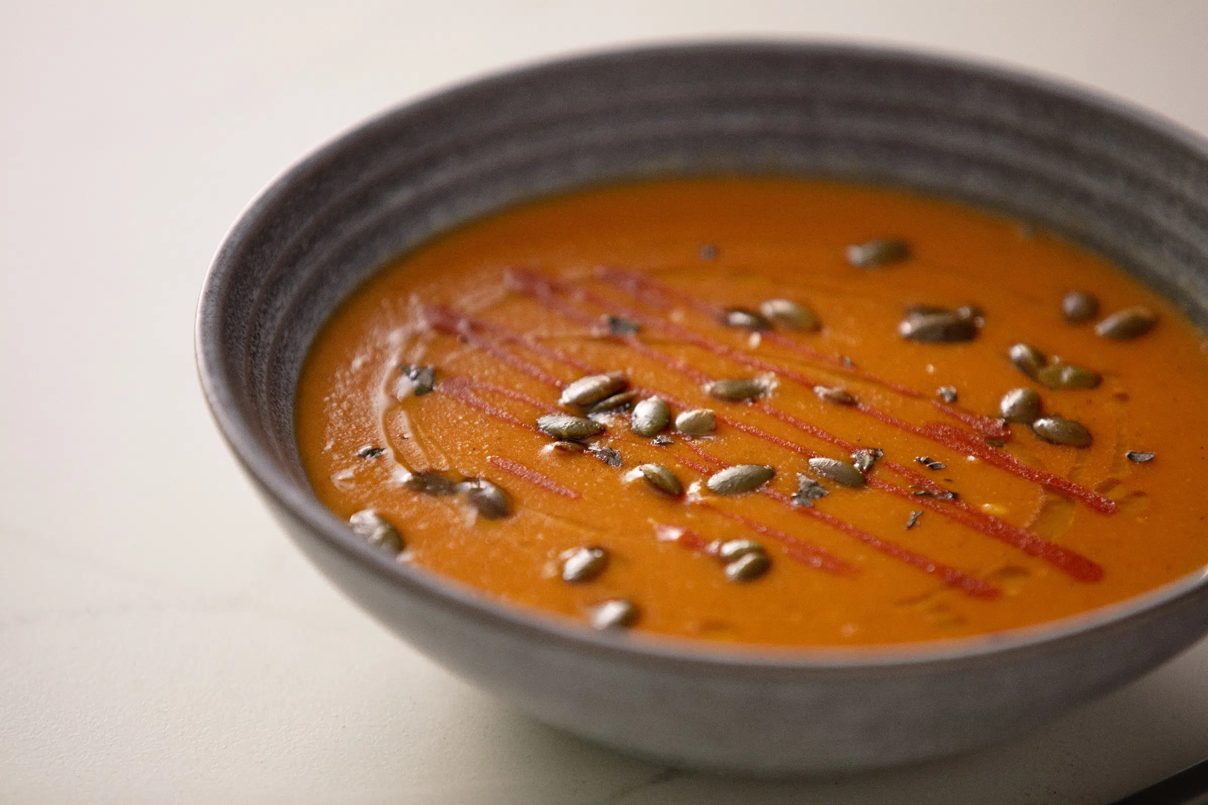 Starting with a silky, naturally sweet Butternut Squash Bisque base, we introduce a punch of flavor with traditional red curry paste to deliver the perfect balance of heat, complexity, and fragrance. The soup is then enhanced with creamy coconut milk to achieve that signature velvety Thai texture. A simple garnish of crunchy toasted pumpkin seeds or pistachios adds a delightful textural contrast. This quick, easy, and satisfying soup offers a spicy, globally inspired twist on a holiday classic.