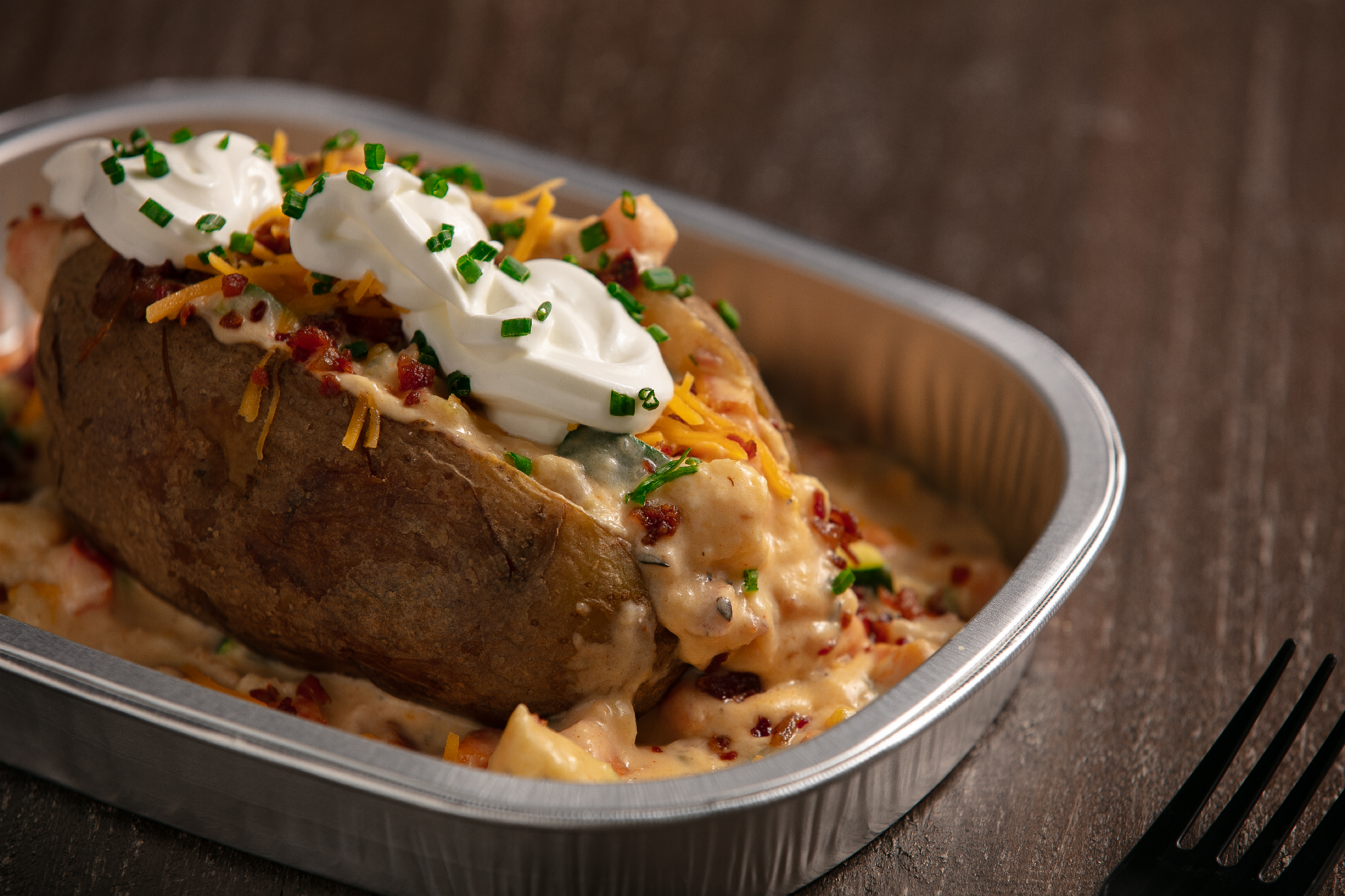Toppings of roasted carrots, bell peppers, zucchini, and broccoli, seasoned with smoked paprika and garlic powder, add a satisfying crunch and a healthy serving of vegetables. Finish the dish with classic loaded potato fixings: crispy bacon, melted cheddar cheese, and a sprinkle of fresh chives.