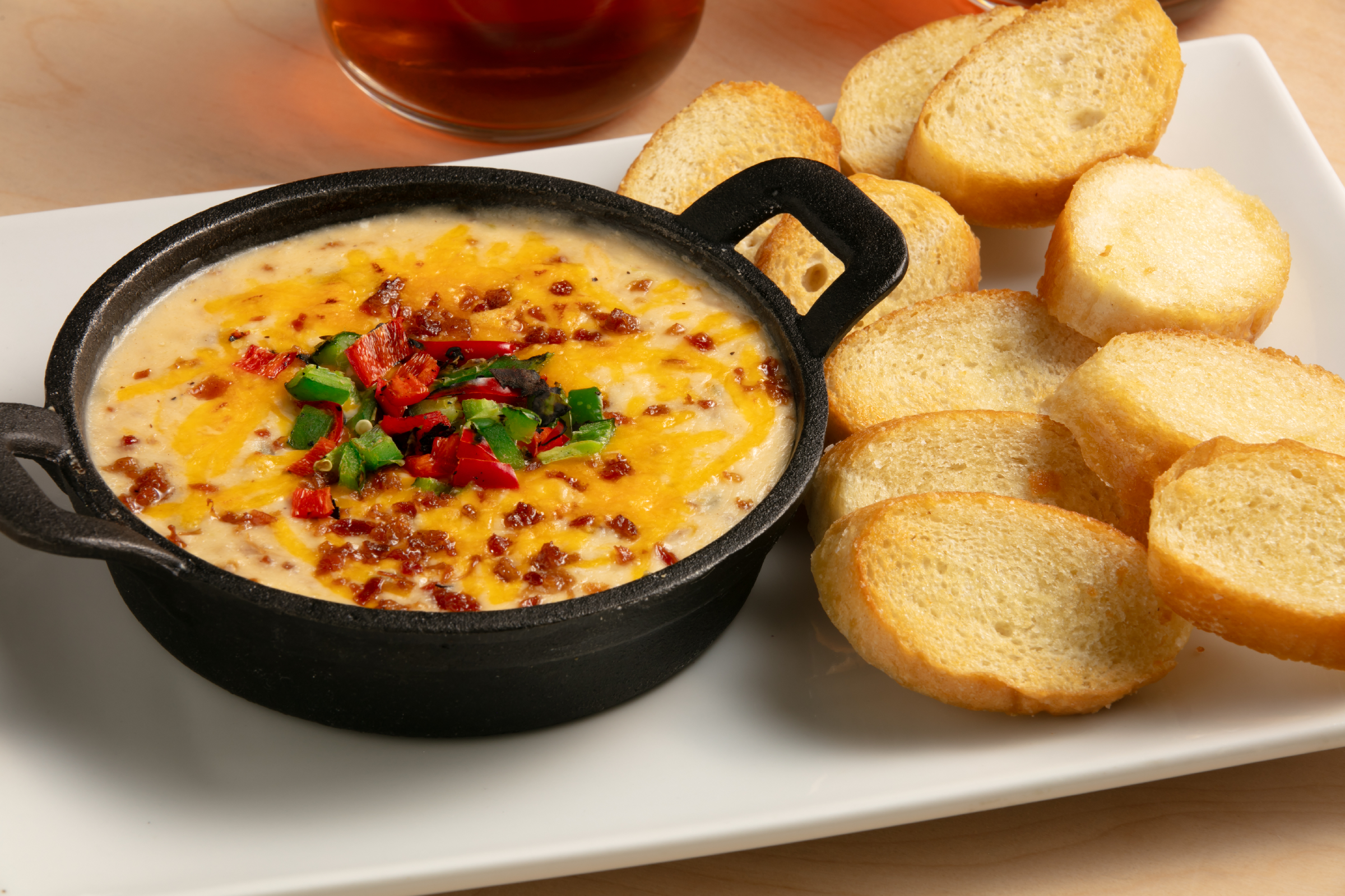 This easy-to-make Jalapeño Popper Dip is a crowd-pleasing appetizer built on a base of creamy Brickman’s Jalapeño Popper Soup, softened cream cheese, and a blend of cheddar and Monterey Jack cheeses. It’s enhanced with savory crumbled bacon and a refreshing burst of sour cream, then topped with charred jalapeños.