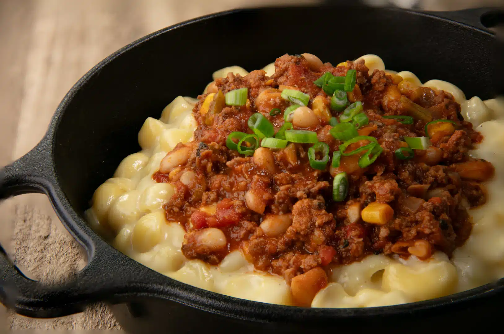 Saddle up for a flavor adventure with our Cowboy Chili Mac & Cheese! This unique twist on a classic combines Brickman’s creamy White Cheddar Mac & Cheese with the bold flavors of Gordon Choice Cactus Chili with Beans. Topped with a sprinkle of cheddar cheese, scallions, and a dollop of crema, this zesty dish with a hint of sweetness will have you saying “Howdy!” for more.
