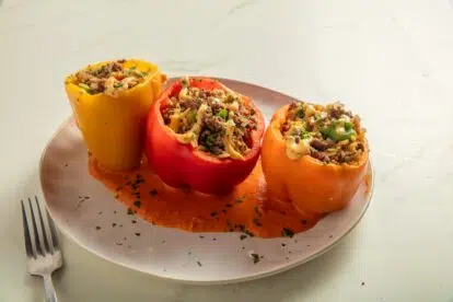 Cajun “Dirty” Stuffed Peppers with Smoky Poblano Cream Cajun “Dirty” Stuffed Peppers with Smoky Poblano Cream